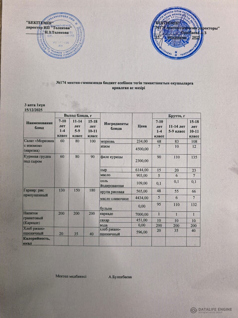 Ыстық тамақты ұйымдастырудың жұмыс жоспары