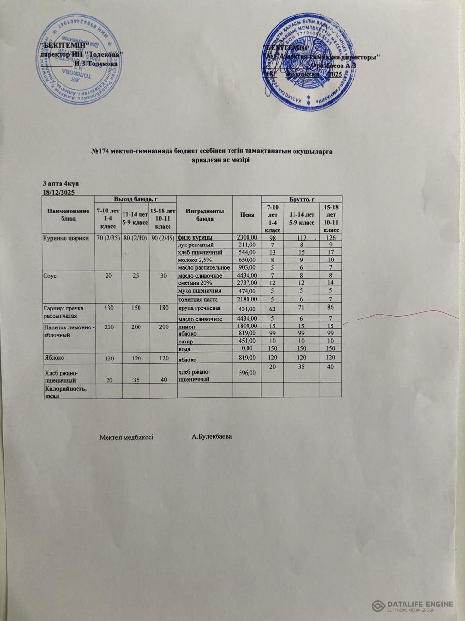 Ыстық тамақты ұйымдастырудың жұмыс жоспары