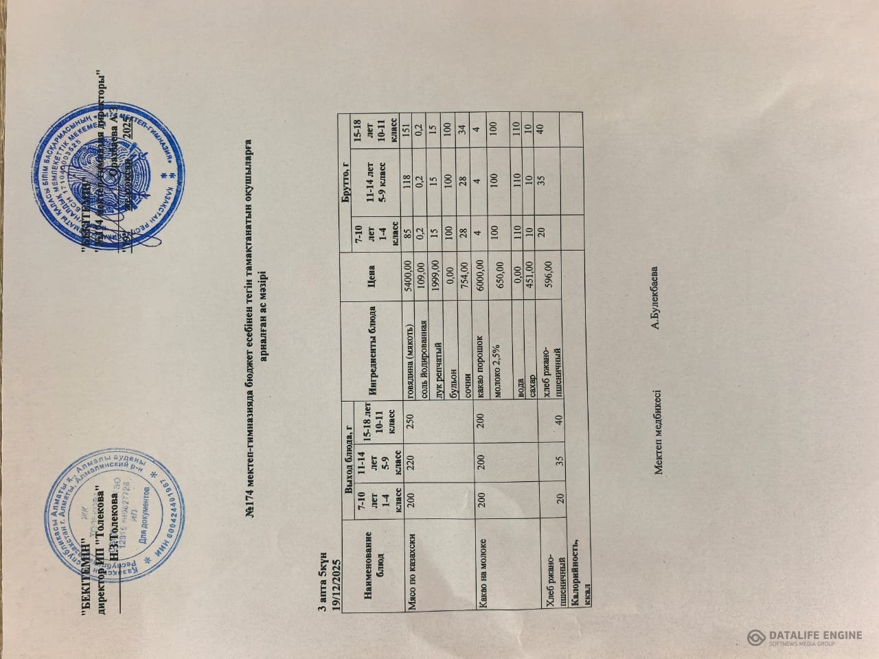 Ыстық тамақты ұйымдастырудың жұмыс жоспары