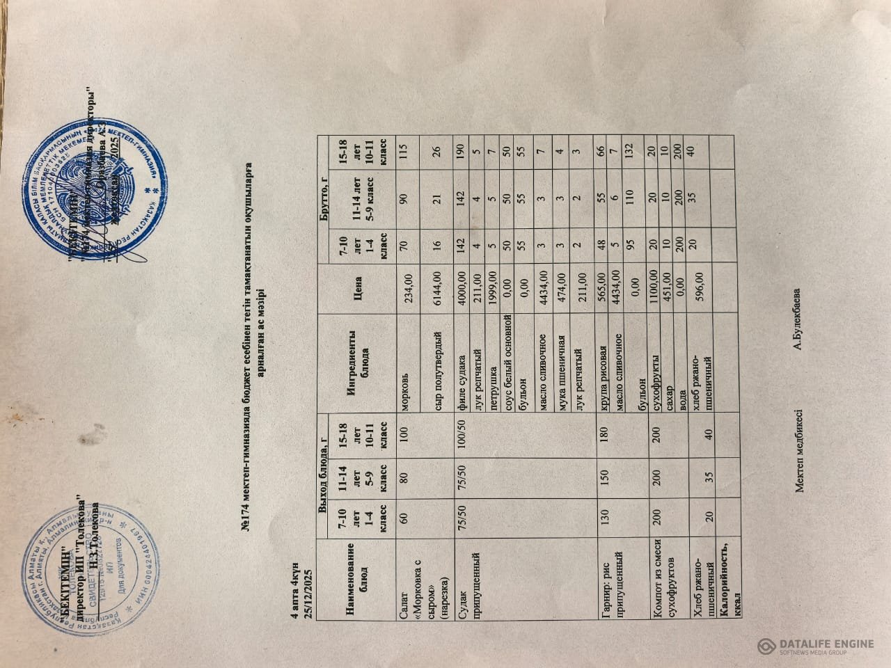 » Ас мәзіріндегі тағамдар