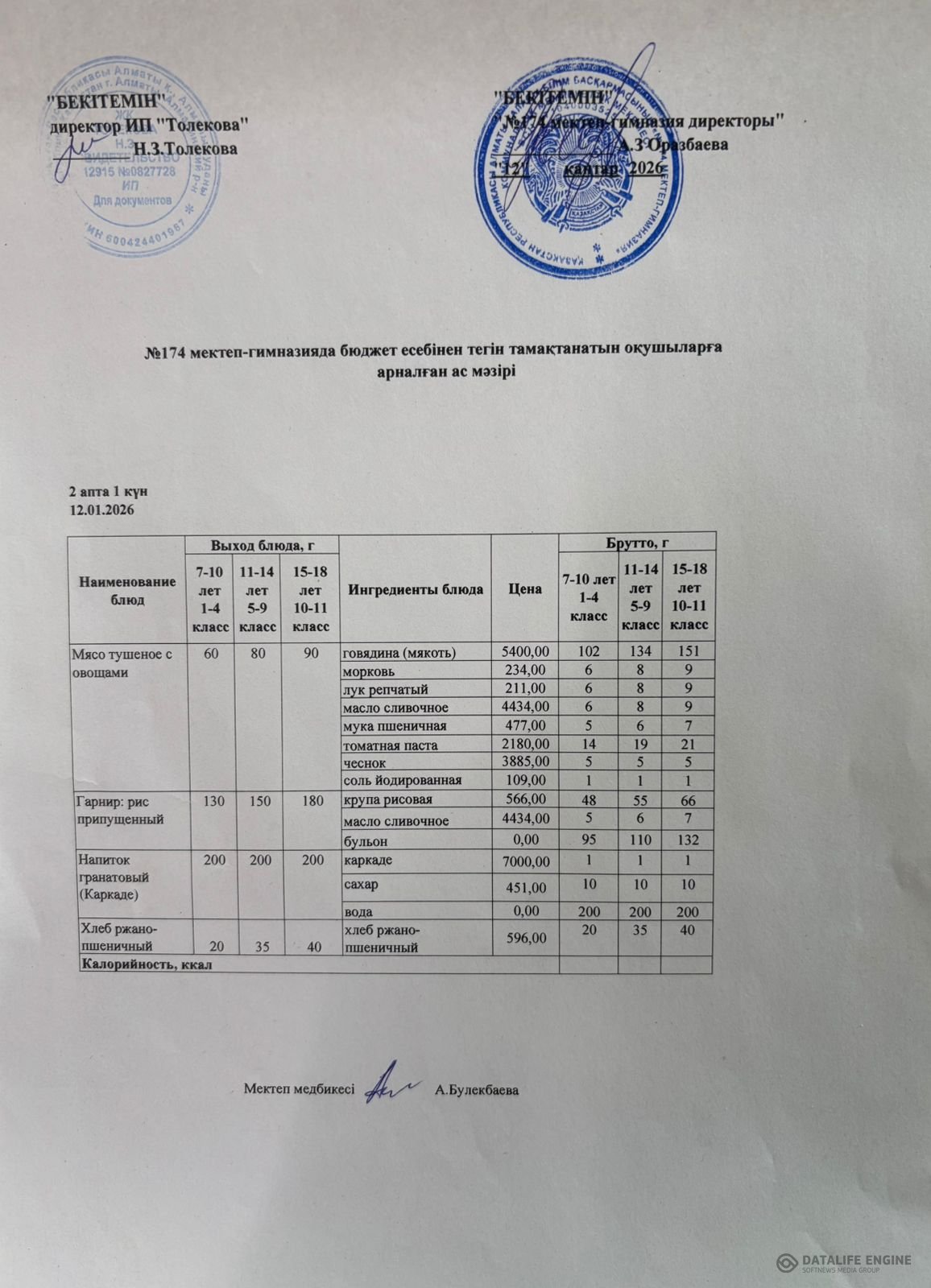 Ас мәзіріндегі тағамдар