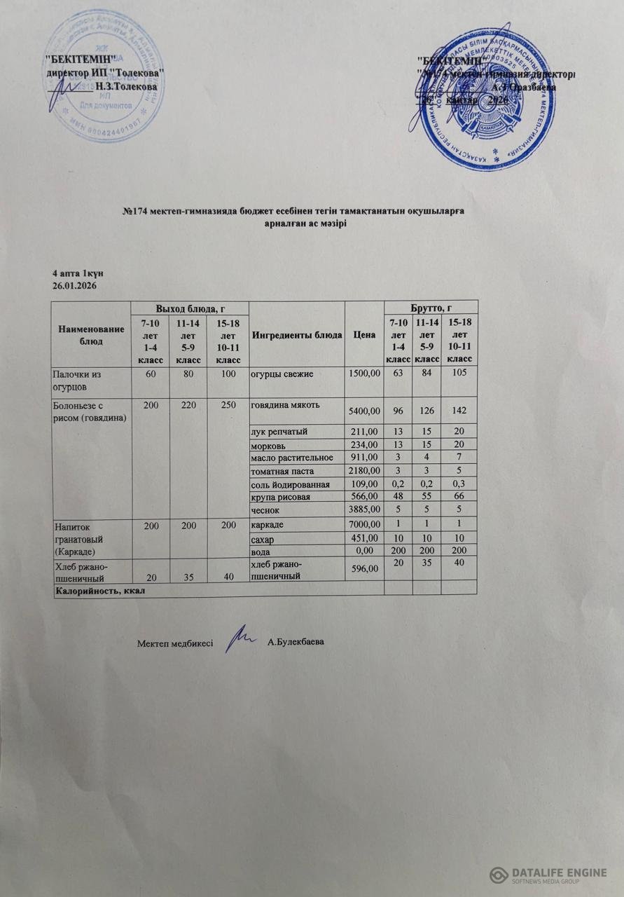 Ыстық тамақты ұйымдастырудың жұмыс жоспары