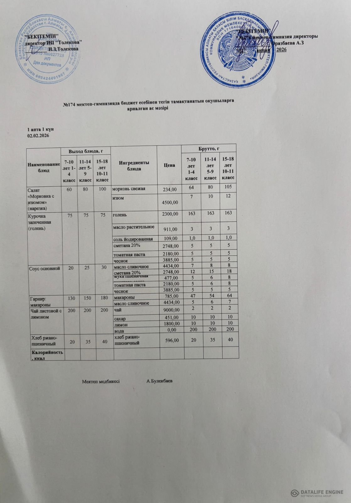 Ыстық тамақты ұйымдастырудың жұмыс жоспары