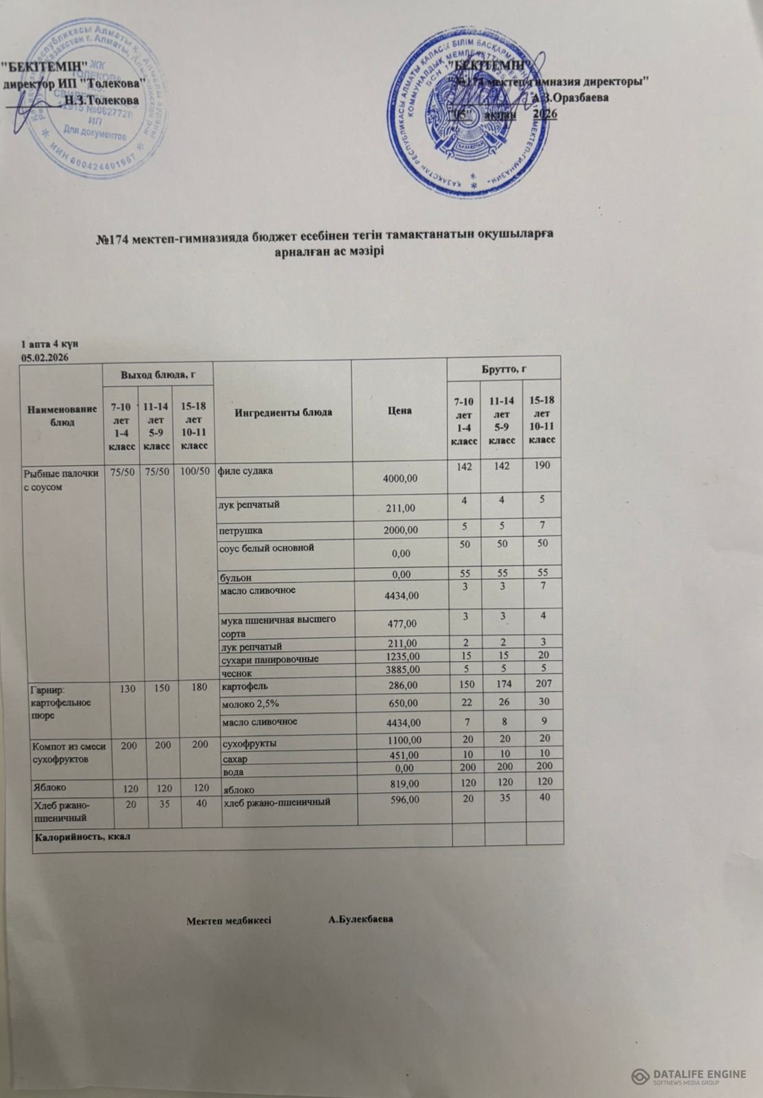 Ыстық тамақты ұйымдастырудың жұмыс жоспары