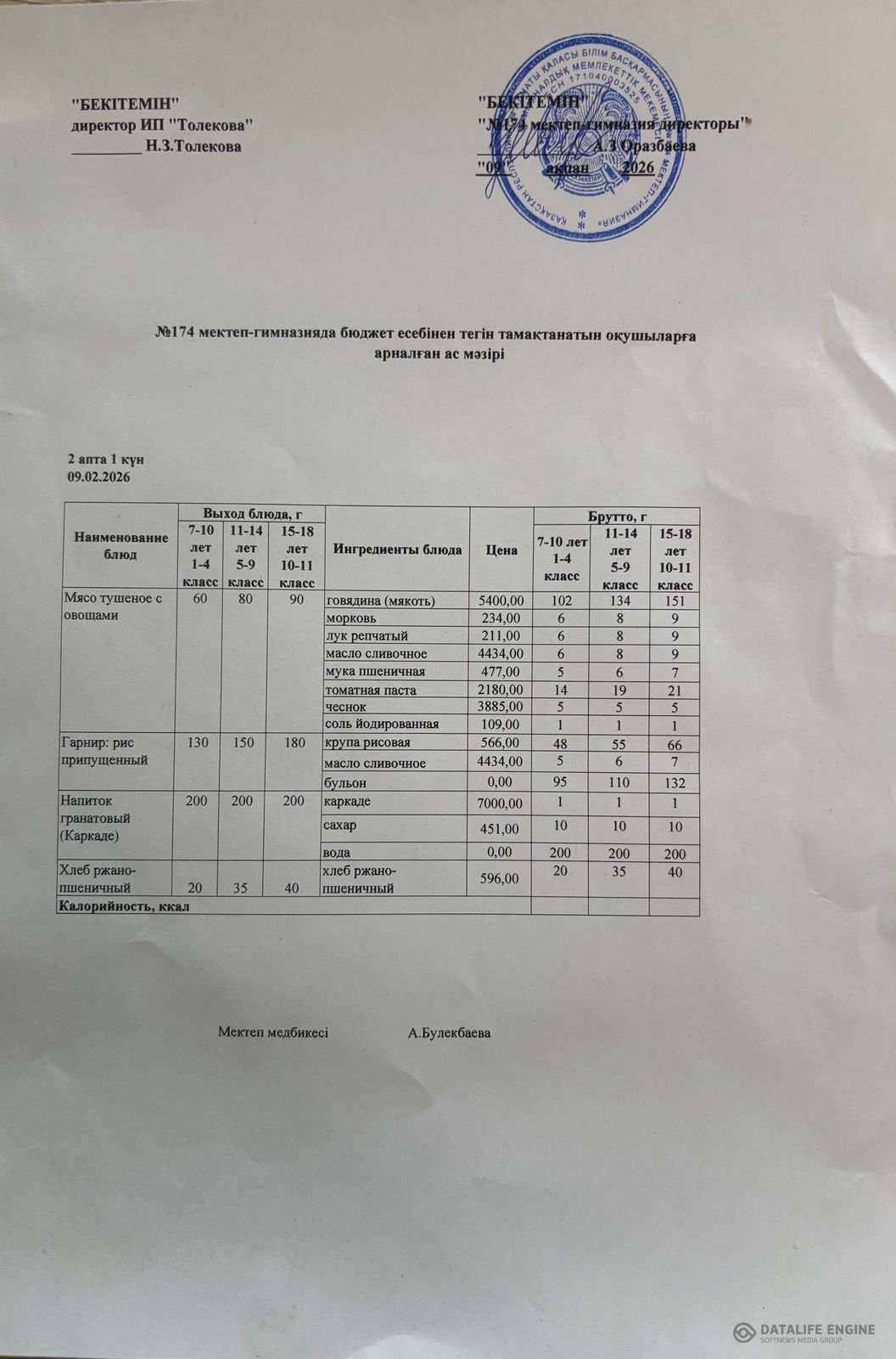» Ас мәзіріндегі тағамдар