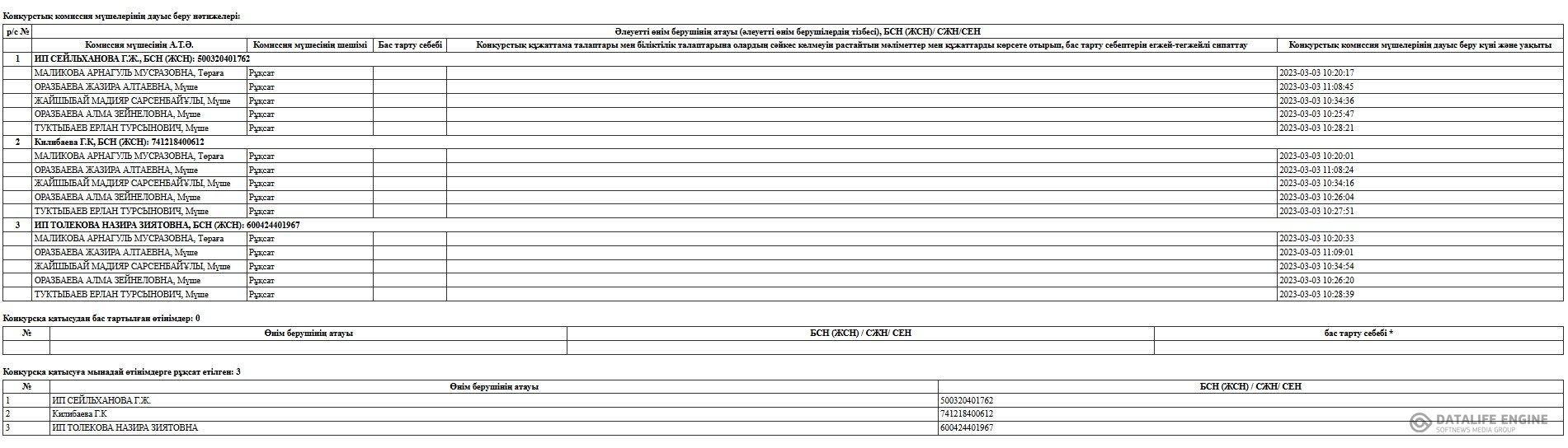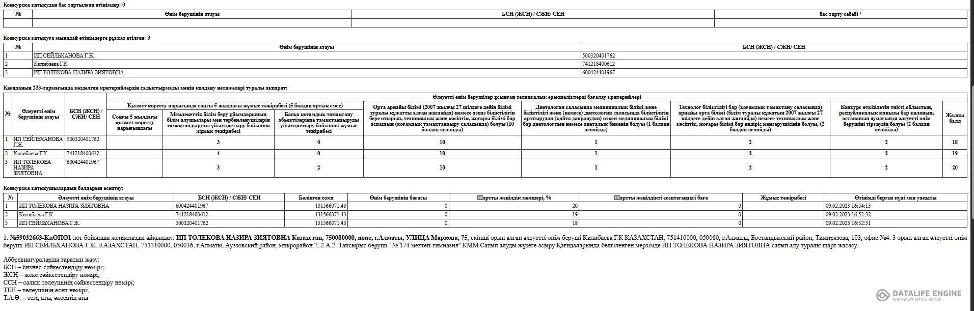 » » » Конкурстың қорытындылары туралы хаттама