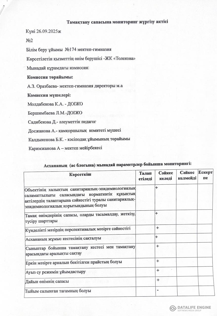 26 сентябрь 2025 0 1 2 3 4 5 Тамақтану сапасына мониторинг жүргізу актісі Осы беттің QR-коды:QR-код этой страницы:
