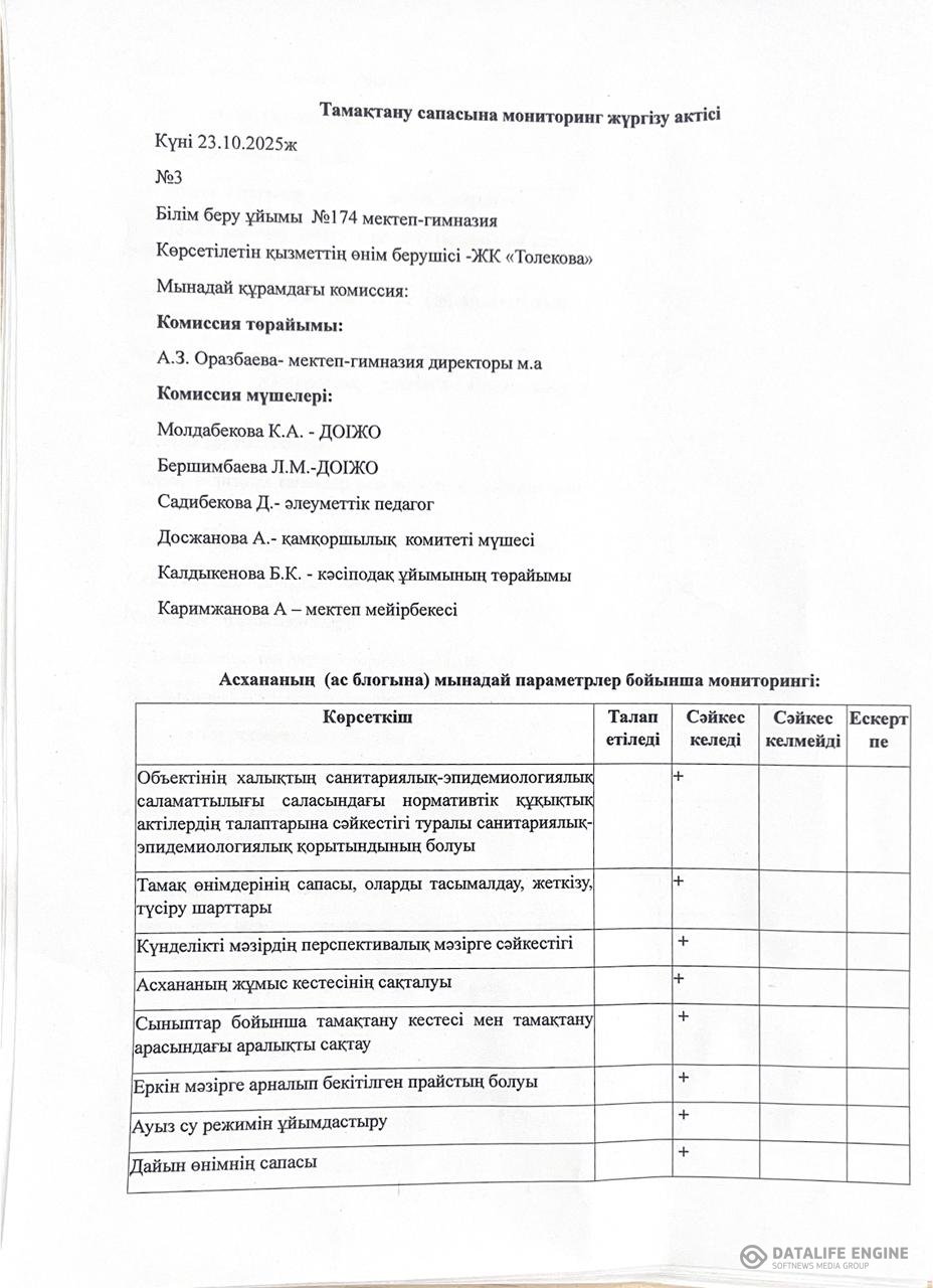 23 октябрь 2025 0 1 2 3 4 5 Тамақтану сапасына мониторинг жүргізу актісі Осы беттің QR-коды:QR-код этой страницы: