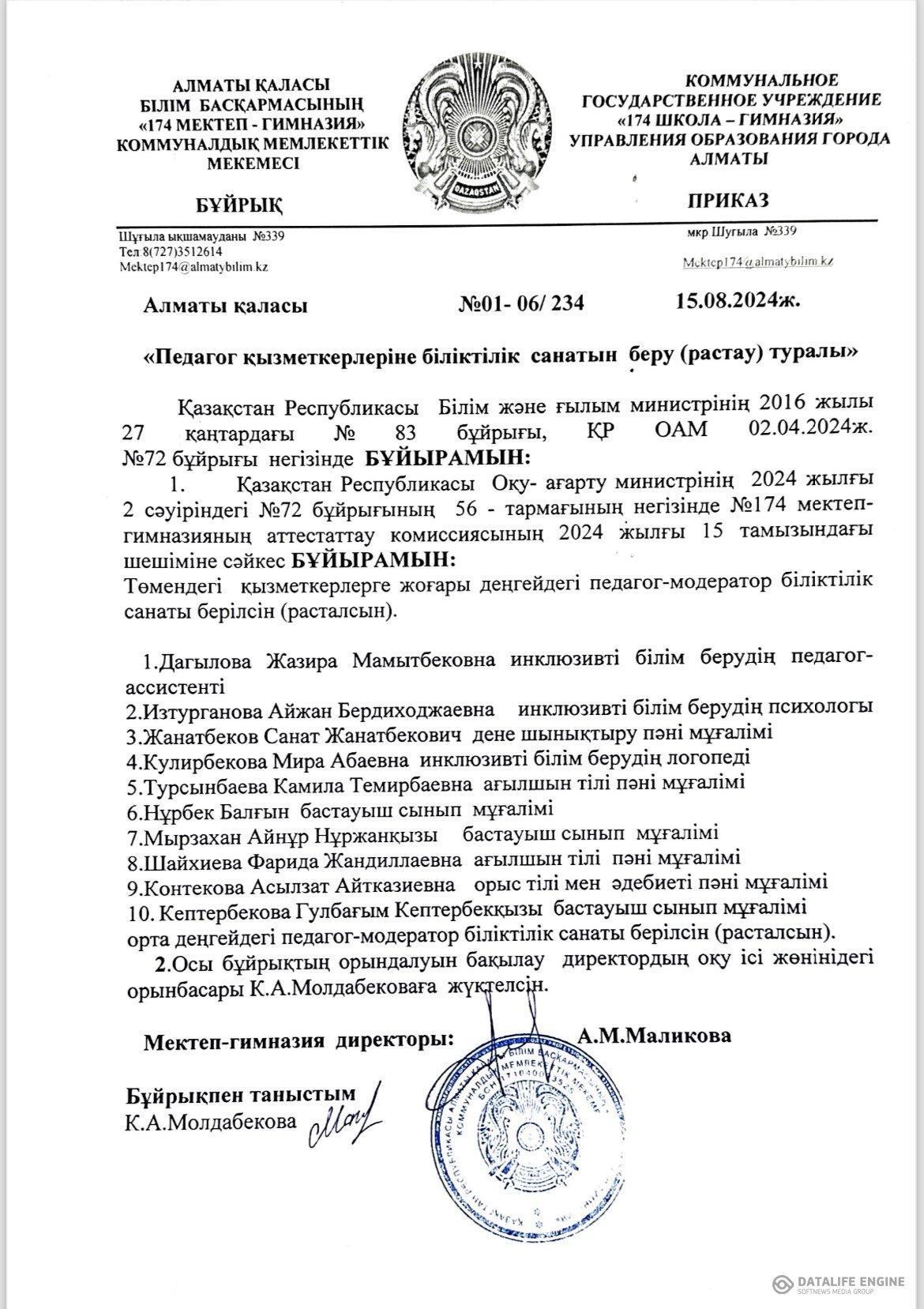 15 август 2024 0 1 2 3 4 5 Педагог қызметкерлердің біліктілік санатын растау туралы БҰЙРЫҚ Осы беттің QR-коды:QR-код этой страницы: