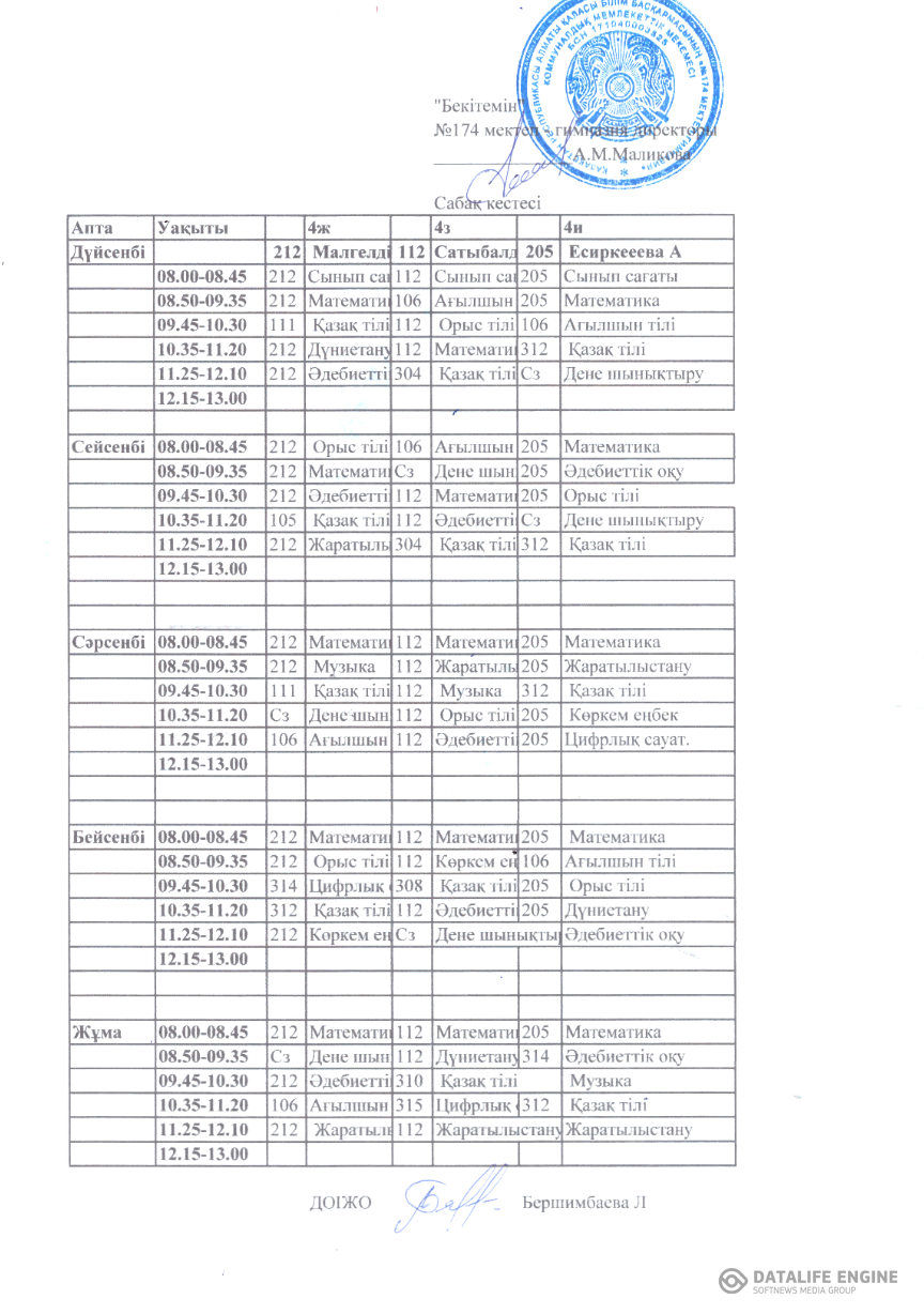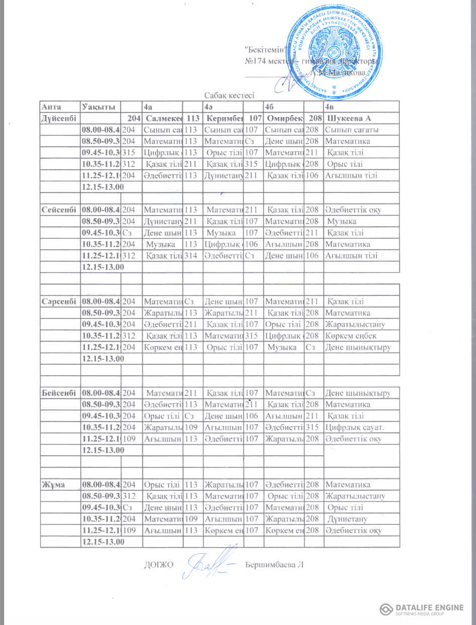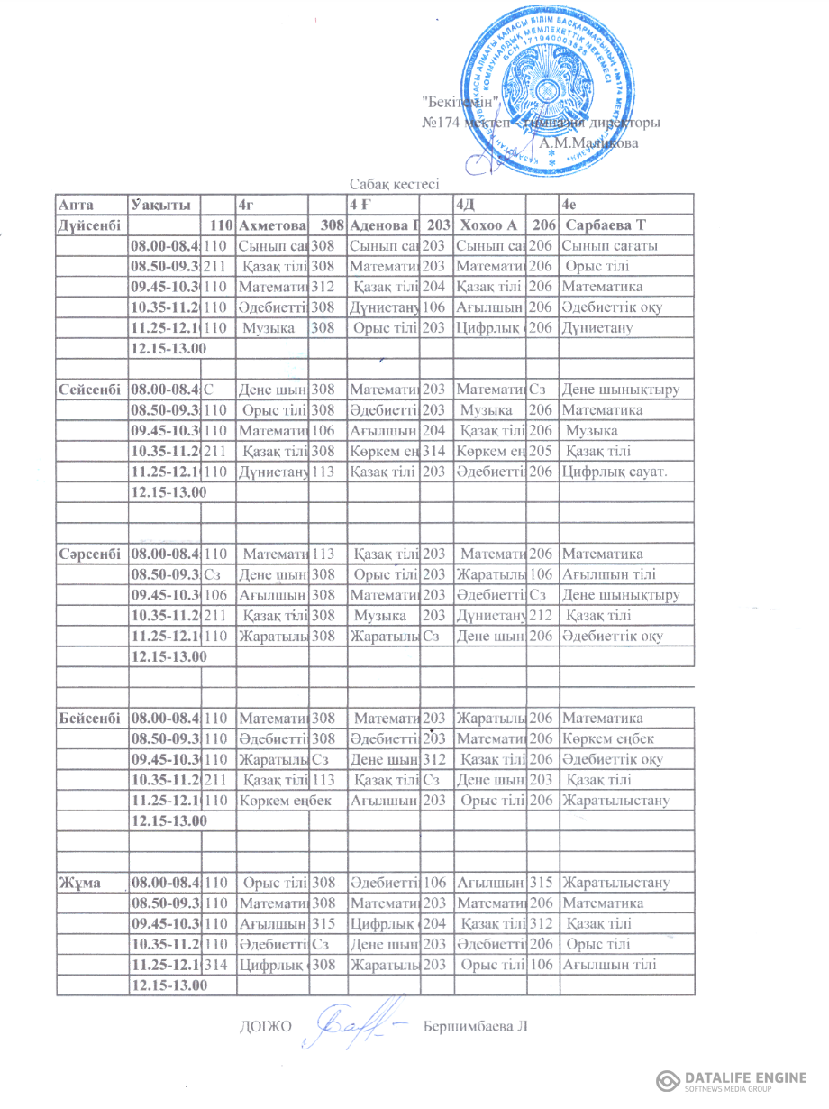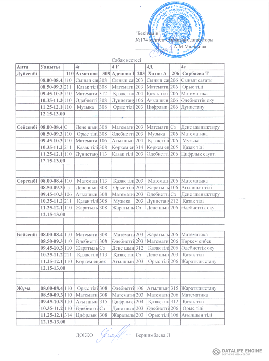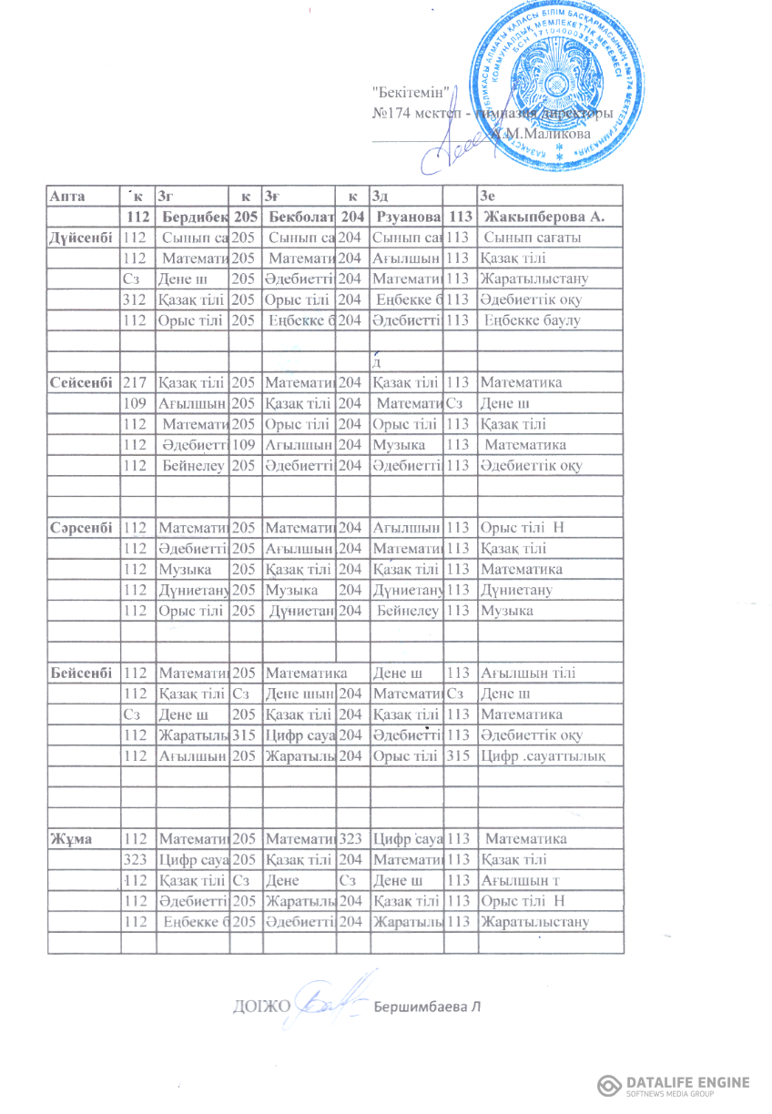 Асханадағы мұғалімдердің кезекшілік кестесі