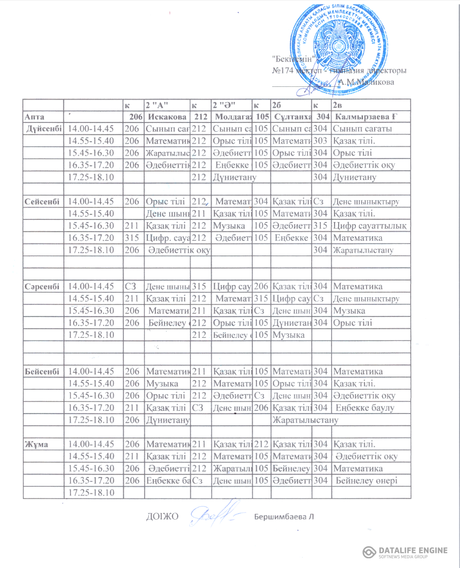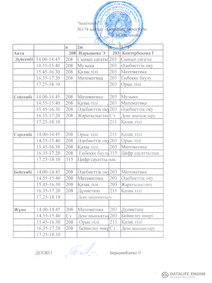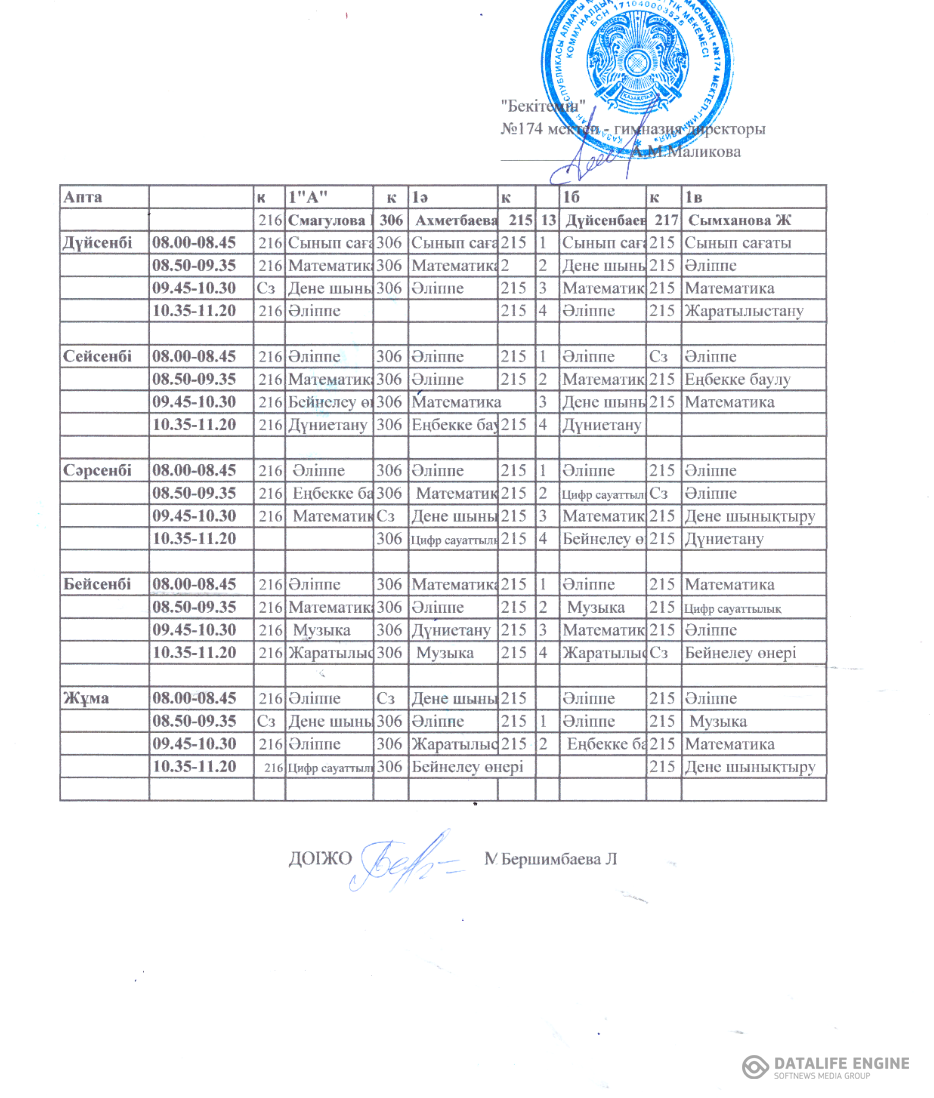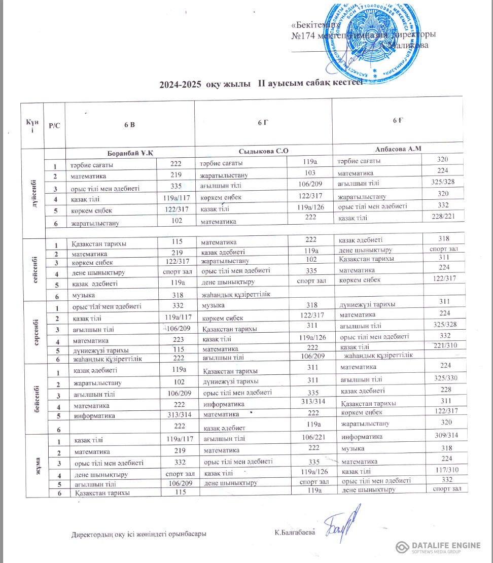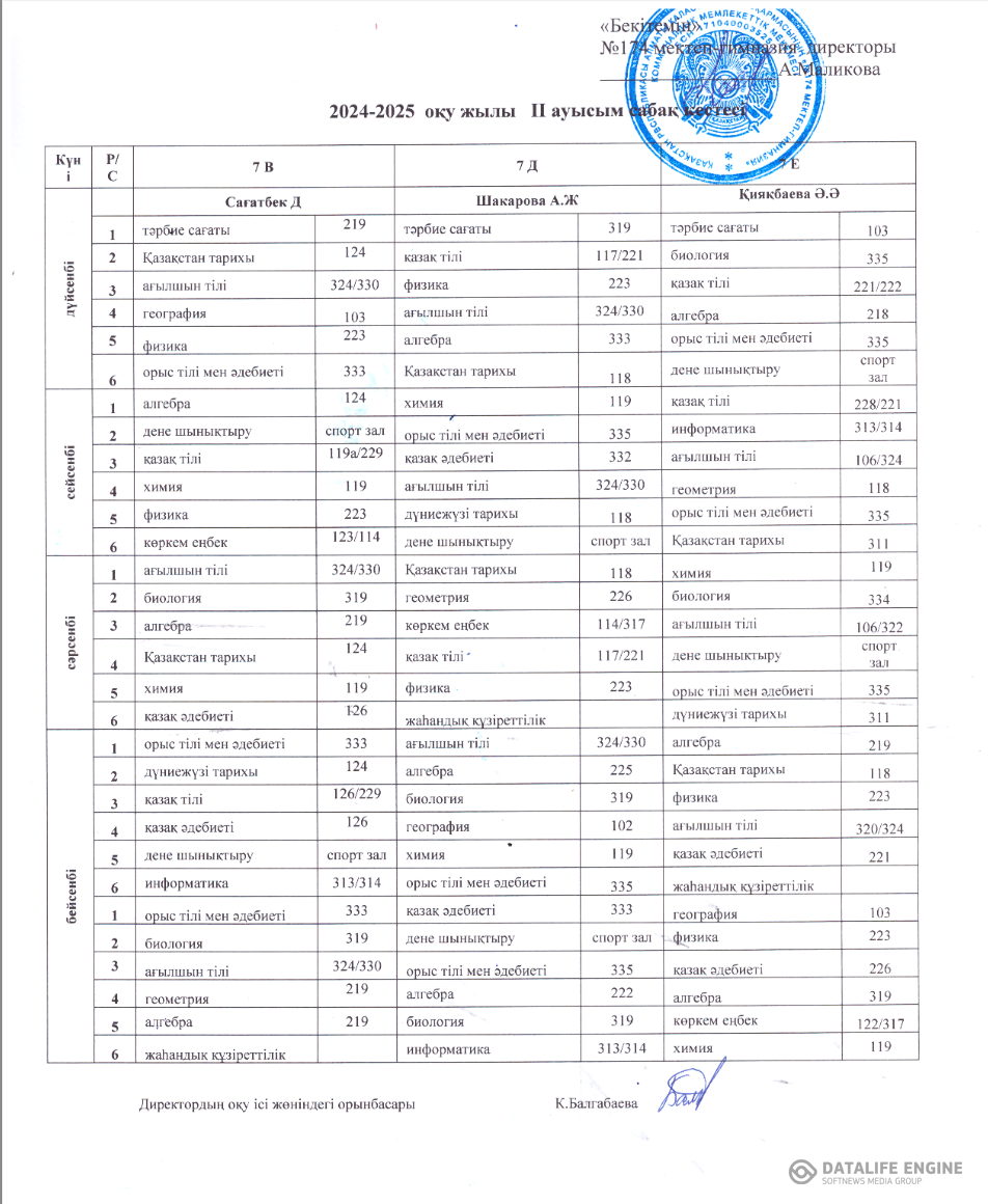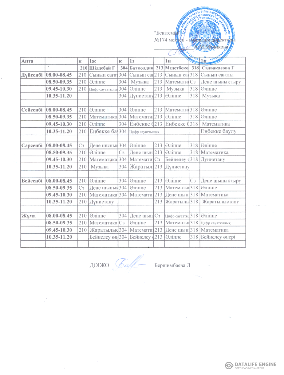 Асханадағы мұғалімдердің кезекшілік кестесі