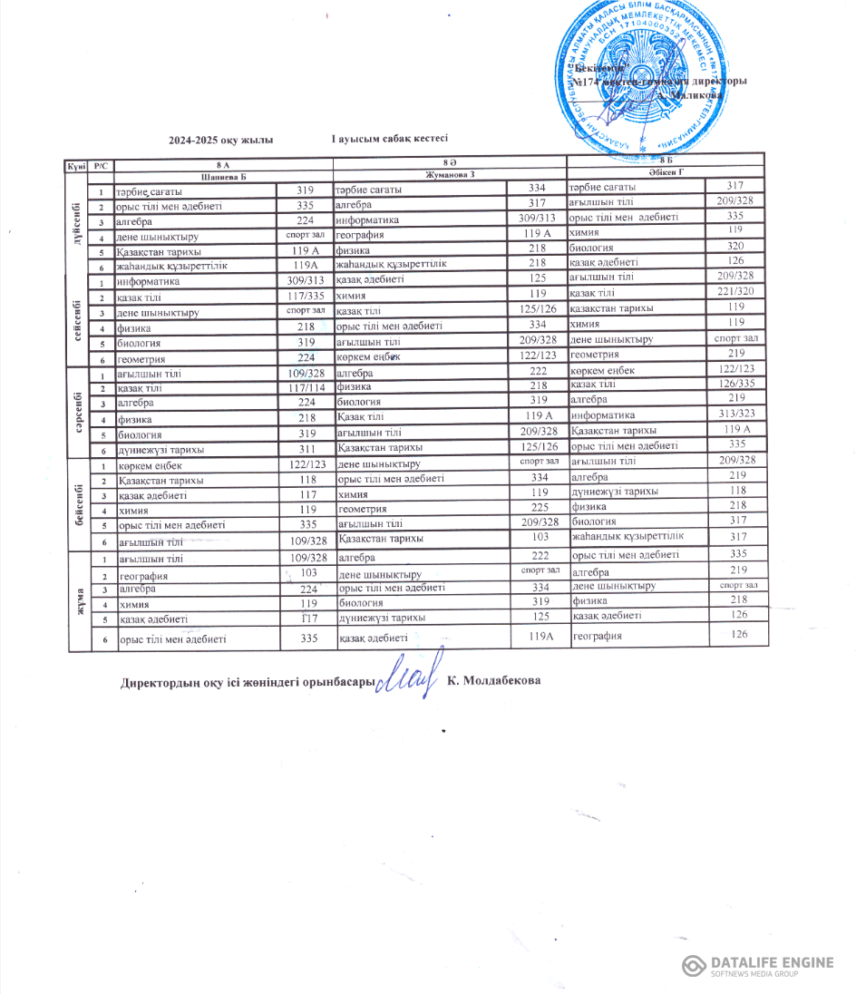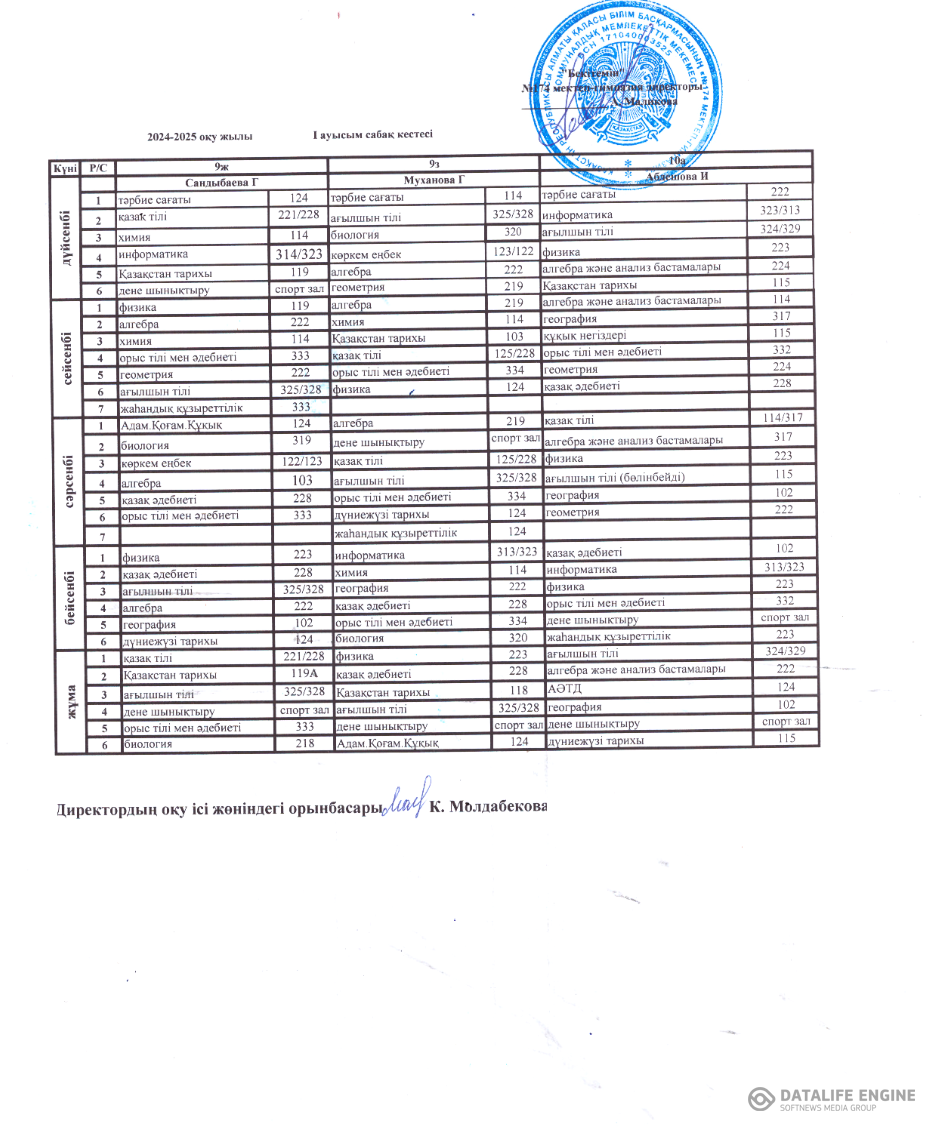 2024-2025 оқу жылындағы санат бойынша мәлімет