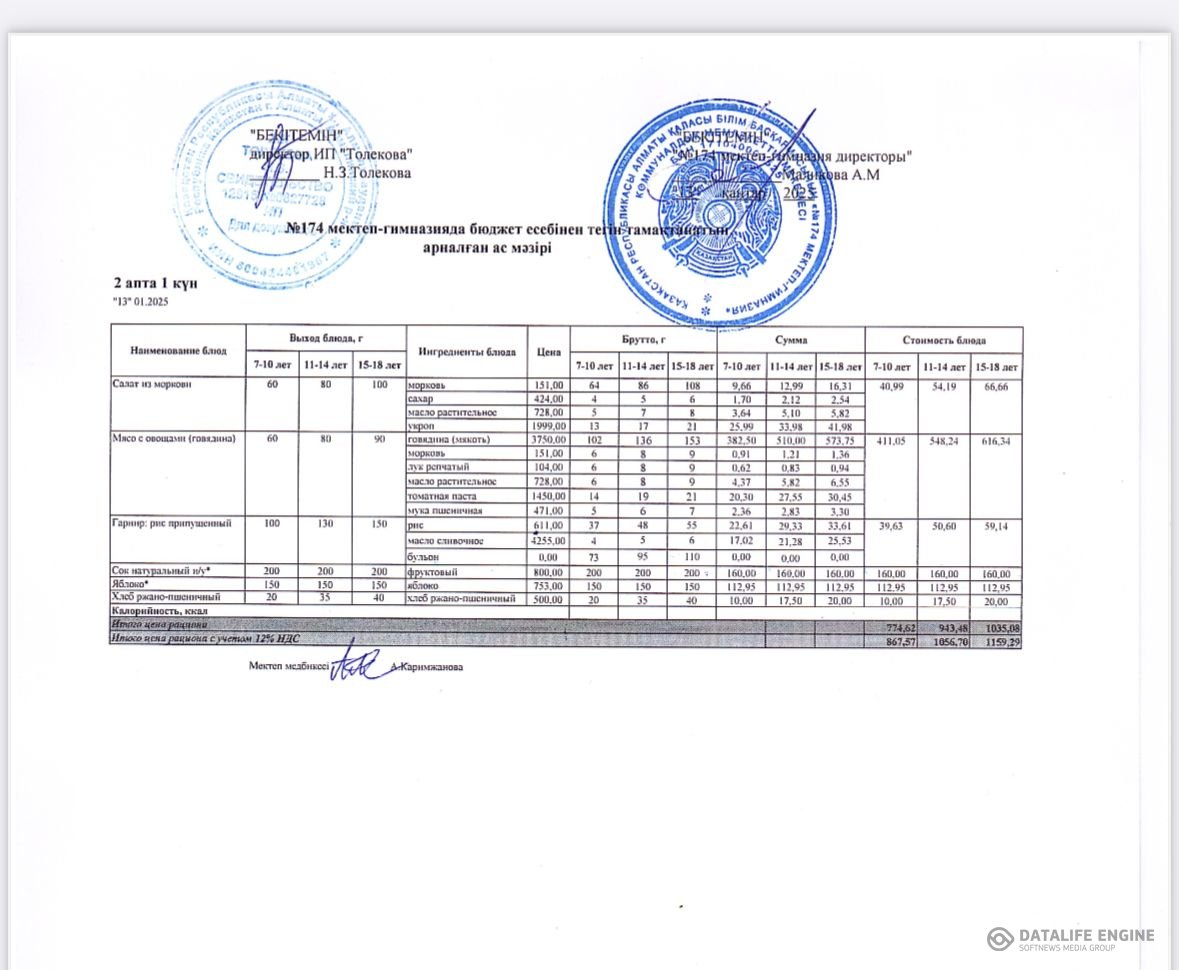 Ыстық тамақты ұйымдастырудың жұмыс жоспары